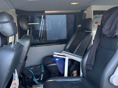 - Features: Air conditioning, Webasto heater with remote control, leather upholstery, wheelchair lift (up to 350kg), all securing belts, 2000W inverter, roof rails and carriers, cruise control, fog lights, cornering lights, side steps, Android radio with rearview camera, folding electric mirrors, central locking with 2 remotes, front and rear parking sensors, tinted windows, seat rails, refrigerator, and 2 batteries.